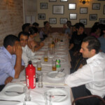 Colaboradores e diretoria reunidos para Confraternização de fim de ano, a qual foi realizada em uma pizzaria.